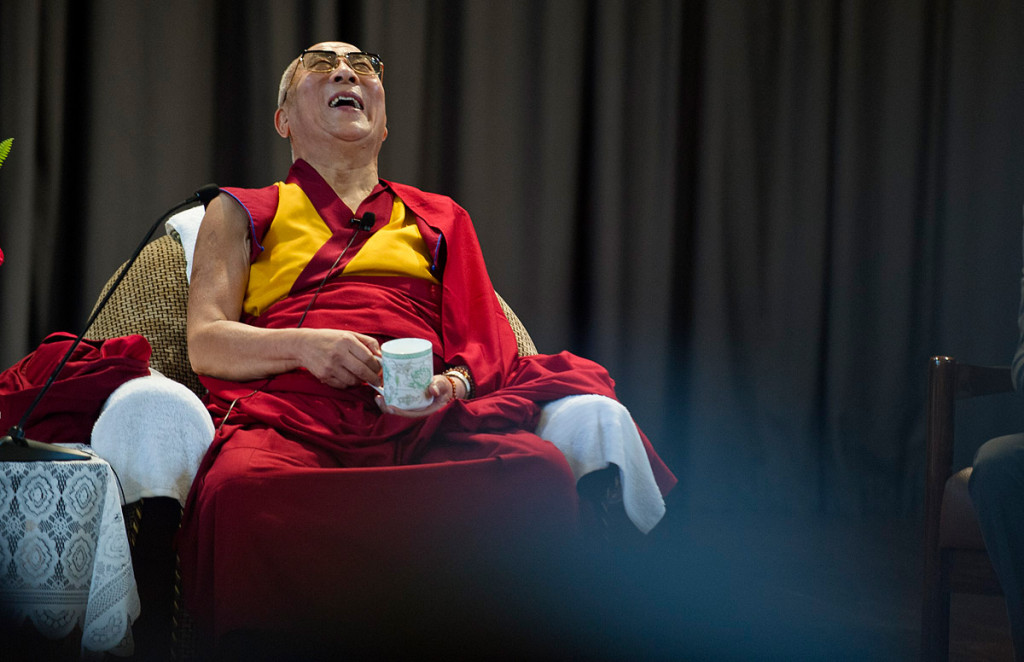 I was there in the stands, watching an ordinary-looking panel, but when his Holiness spoke, and especially when he laughed, I was suddenly in the presence of … the absence of bullshit. Seriously. It’s not what he is – spiritual leader, scientist, philosopher, etc – it’s what he isn’t. There is no spin, no manufacturing of issues, no politics. He is devoid of “image.” He is not (gasp!) concerned with optics. It took me a while to be able to comprehend what I was experiencing, but HHTDL simply is. And it’s remarkable in its honesty.